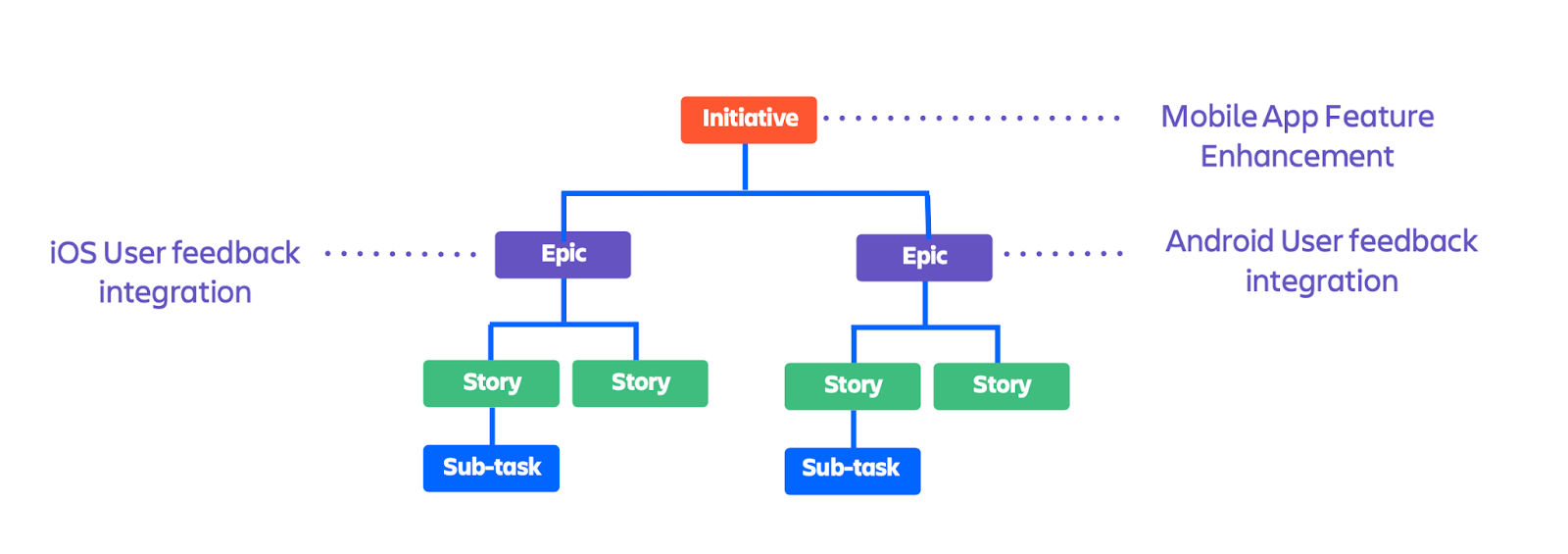 For Jira Premium users, Atlassian offers Plans (formerly Advanced Roadmaps), enabling organisations to create a work hierarchy that spans initiatives, features, epics, tasks, and subtasks. This hierarchy allows teams to connect the dots between high-level business objectives and day-to-day activities.