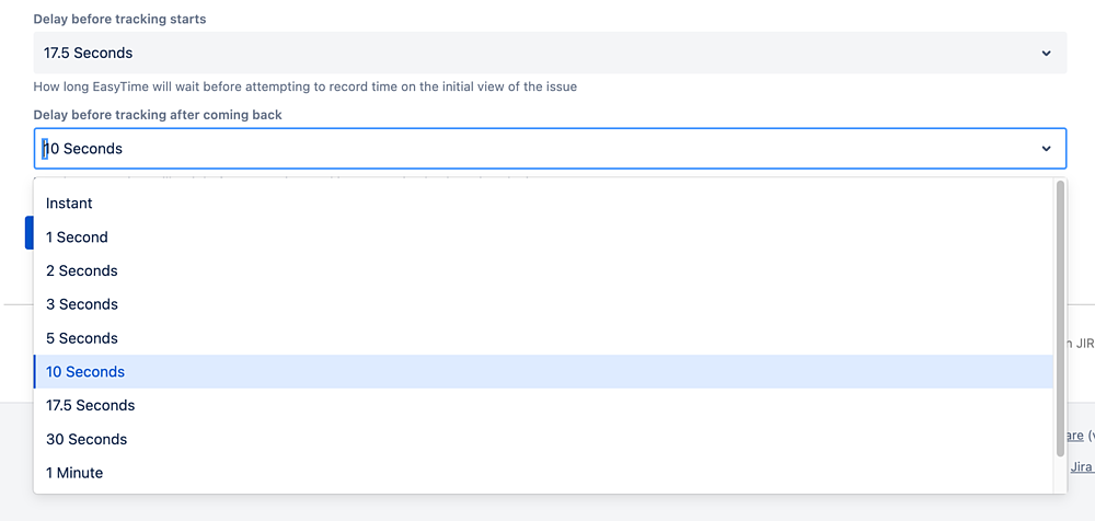 We first built EasyTime for our own internal use - we spent way too long filling in timesheets manually. Sometimes we spend a lot of time reading through tickets before switching away, other times we look quickly through many issues to find what we are really after. So we decided, after 17 and a half seconds EasyTime will create a "View Event" work log. For some customers this is perfect, for others, this is far to short or too long. So with the attitude of "why not both?", we added the option to configure the time to start tracking.