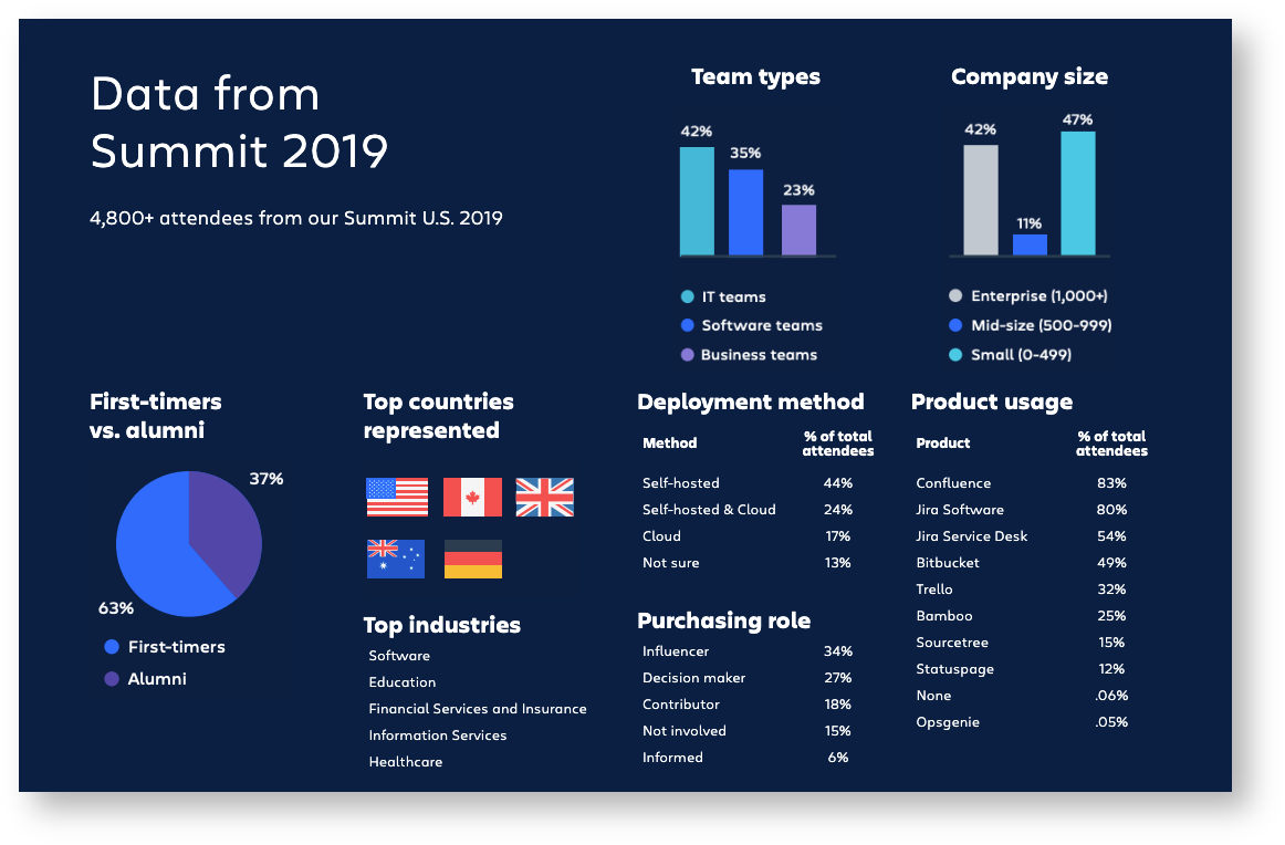 We’re transforming Summit from an Atlassian user event to the ultimate conference for teams, by teams. Thousands of people from every type of team and industry will come together to learn about innovative ways to work, the exciting changes happening to their Atlassian tools, and share ways to improve the work day, workplace, and work life.