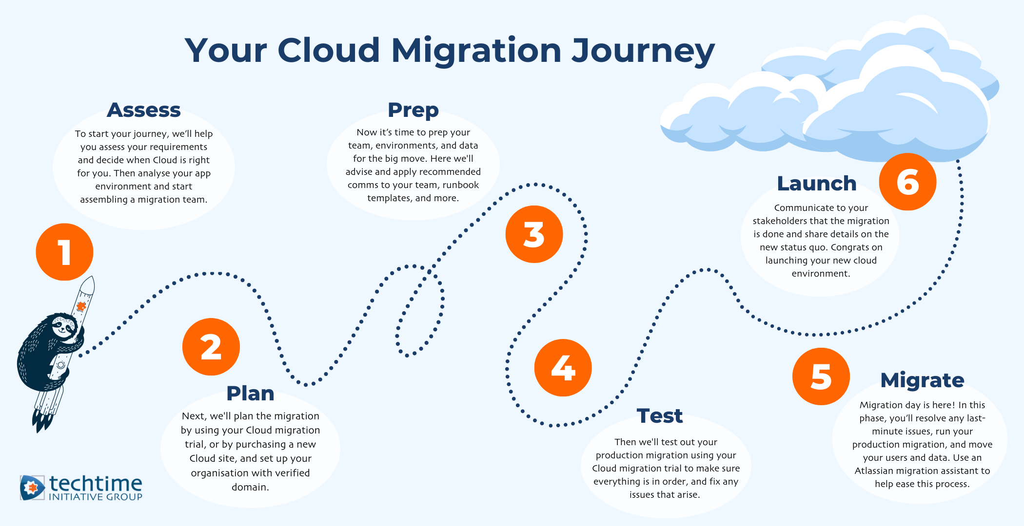Migrate to the Atlassian cloud with TechTime for expert assistance, secure data migration, customization, 24x7 support, and cost savings for a smooth transition and successful outcome.