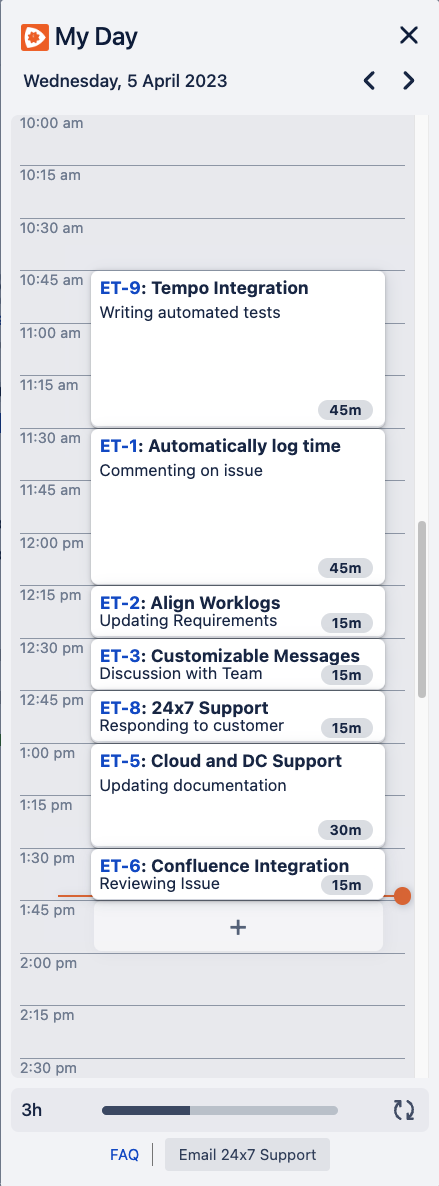 During my day as a developer I spend a lot time in my web browser doing all the other things that support my development work. For me a lot of this is using google's suite of office tools, especially the calendar, google meets, and google sheets. EasyTime has a browser extension available for chrome and edge that scans your history for issue keys. If it finds one it just sends this information back to Jira to log work under that issue. For me this really helps to fill in the gaps in my timesheet, picking up things that the other EasyTime integrations might have missed.